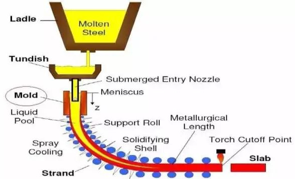 用连续铸造法可以浇注钢、铁、铜合金、铝合金、镁合金等断面形状不变的长铸件,如铸锭、板坯、棒坯、管子等。