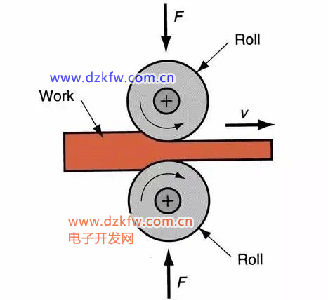 轧制:将金属坯料通过一对旋转轧辊的间隙(各种形状),因受轧辊的压缩成型轧制使材料截面减小,长度增加的压力加工方法。