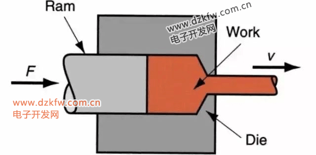 挤压:坯料在三向不均匀压应力作用下,从模具的孔口或缝隙挤出使之横截面积减小长度增加,成为所需制品的加工方法叫挤压,坯料的这种加工叫挤压成型。