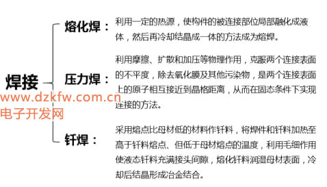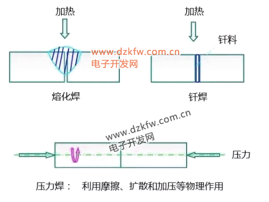 焊接:也称作熔接,镕接是一种以加热、高温或者高压的方式接合金属或其他热塑性材料如塑料的制造工艺及技术。