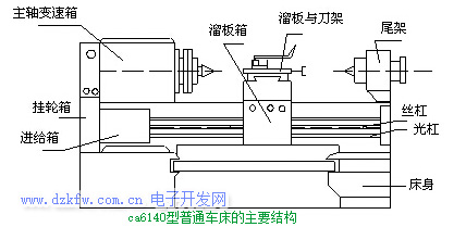 车床的主运动是工件的旋转运动,它是由主轴通过卡盘或顶尖带动工件旋转。的动力通过主轴箱传给主轴,主轴一般只要单方向的旋转运动,只有在车螺纹时才需要用反转来退刀。