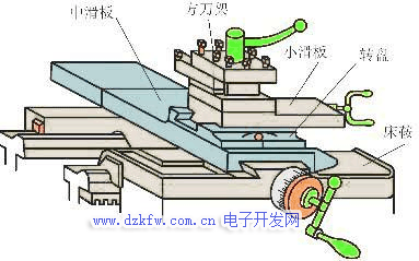 杠;10-床身;11-后床脚;12-中刀架;13-方刀架;14-转盘;15-小刀架;16-大刀架