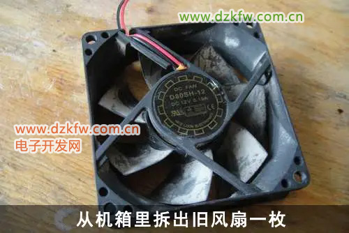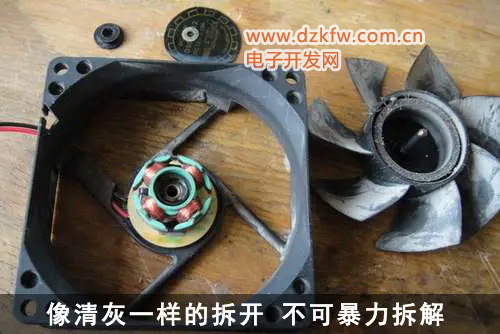 从机箱中拆出一个布满灰尘的风扇,非暴力拆解之。