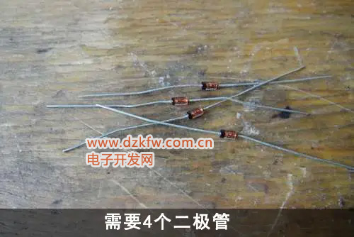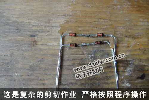 1.将两个二级管的有黑圈的一头的线脚剪到1厘米长