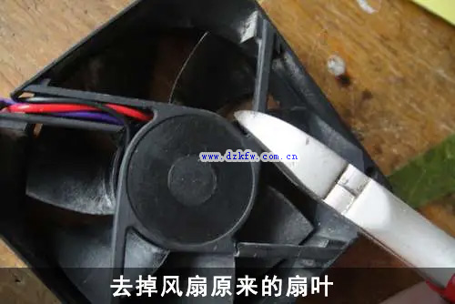 暴力去掉原风扇扇叶,为制作新扇叶做准备。