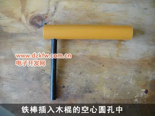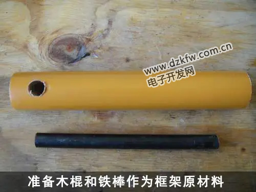 准备木棍和铁棒做框架材料,木管的一头要提前钻出一个铁棒同直径的孔。
