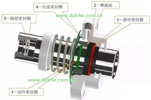 弹性元件(弹簧、波纹管)它主要起预紧、补偿和缓冲的作用,要求始终保持足够的弹性来克服辅助密封和传动件的摩擦和动环等的惯性,保证端面密封副良好的贴合和动环的追随性,材料要求耐腐蚀、耐疲劳。