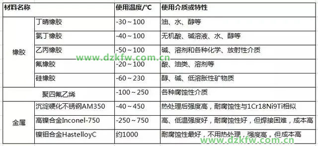 综上所述,辅助密封材料,在一般介质中可使用橡胶材料制成的O形圈、垫圈和波纹管等;在腐蚀性介质中可使用聚四氟乙烯制成的V形圈、楔形环、垫圈和波纹管等;在高、低温条件下可使用金属波纹管。选用时应考虑材料的使用温度和耐腐蚀性。