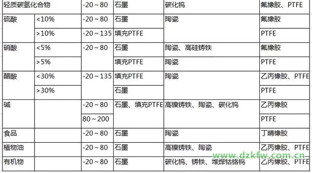 过热水 100度:(动)碳化钨,1Cr13 堆焊钴铬钨,铸铁;(静)浸树脂石墨,碳化钨,金属陶瓷。