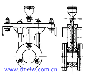 当螺旋输送机的长度超过3~4m时,除在槽端设置轴承外,还要安装中间轴承,以承受螺旋轴的一部分质量和运转时所产生的力。中间轴承上部悬挂在横向板条上,板条则固定在料槽的凸缘或它的加固角钢上,因此,称为悬挂轴承,又称吊轴承。悬挂轴承的种类很多。图8所示是GX型螺旋输送机的悬挂轴承。图8 悬挂轴承