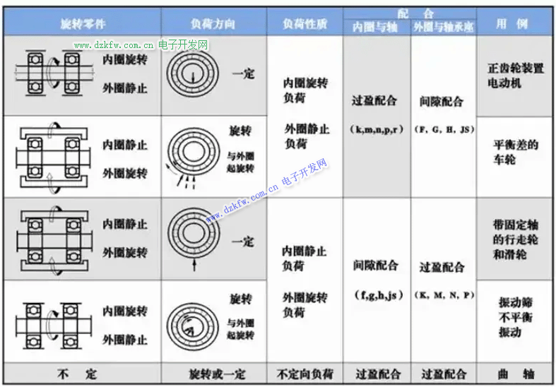 在选择轴承的安装配合方式时,我们需要综合考虑以下因素: