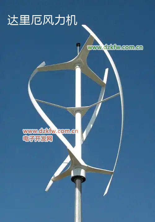是法国G.J.M达里厄于19世纪30年代发明的。在20世纪70年代,加拿大国家科学研究院对此进行了大量的研究,现在是水平轴风力发电机的主要竞争者。达里厄式风轮是一种升力装置,弯曲叶片的剖面是翼型,它的启动力矩低,但尖速比可以很高,对于给定的风轮重量和成本,有较高的功率输出。现在有多种达里厄式风力发电机,如Φ型,Δ型,Y型和H型等。这些风轮可以设计成单叶片,双叶片,三叶片或者多叶片。