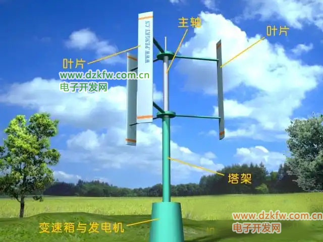 垂直轴风力发电机在风向改变的时候无需对风,在这点上相对于水平轴风力发电机是一大优势,它不仅使结构设计简化,而且也减少了风轮对风时的陀螺力。