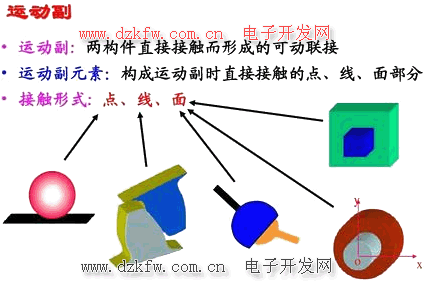 运动副是两构件直接接触并能产生相对运动的活动联接。两个构件上参与接触而构成运动副的点、线、面等元素被称为运动副元素。