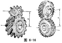平行轴齿轮副或交错轴齿轮副,两轴线间的最短距离(图6-16),亦即两齿轮轴线间公垂线(连心线)长度称齿轮中心距简称中心距。其值总等于齿轮副两节圆半径之和(a=r1′+r2′),或等于两分度圆半径与分离量之和(a=r1+r2+ym)。