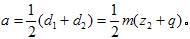 无侧隙啮合,并具有标准顶隙值,这种安装条件的齿轮副中心距称标准安装中心距。中心距的通用计算式为:![]()