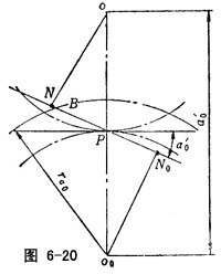 插齿刀是一个变位齿轮,切制标准齿轮时,相当于一对角变位齿轮副,不发生根切的条件是:刀具的齿顶圆不应越过齿坯基圆上的啮合极点N,即PB≤PN(或者N0B≤N0N)(图6-20),于是可得:
