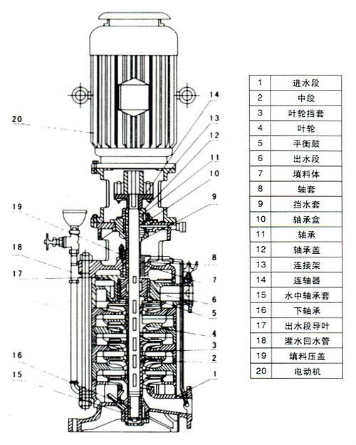 衡管、平衡板、平衡盘);密封裝置(填料密封、机械密封);泵轴(轴间套、叶轮、定位键、轴承)组成