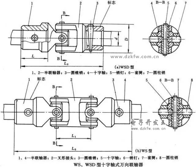 万向联轴器有多种结构型式,例如:十字轴式、球笼式、球叉式、凸块式、球销式、球铰式、球铰柱塞式、三销式、三叉杆式、三球销式、铰杆式等;最常用的为十字轴式,其次为球笼式。在实际应用中,根据所传递转矩大小,分为重型、中型、轻型和小型。