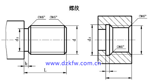 为了使加工面末端不留赘物,保证零件之间能装配到底,且在加工时便于退出刀具,常常在加工面的末端预先加工出退刀槽。在螺纹末端加工出的退刀槽称螺纹退刀槽。