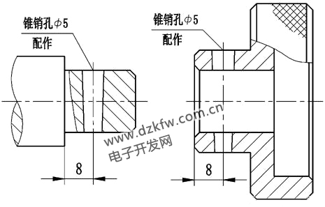 两零件用销联接,销孔在装配时才加工,所以在零件图上除注出销孔的定形和定位尺寸以外,还必须注明"配作"两字。
