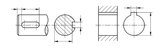 用键联接的两个零件,都必须加工出键槽。轴上的键槽必须注出定位尺寸和键槽的长度尺寸,宽度和深度尺寸则注在剖面图上。轮毂上的键槽是通槽,只需在局部视图上注出键槽的宽度和深度。