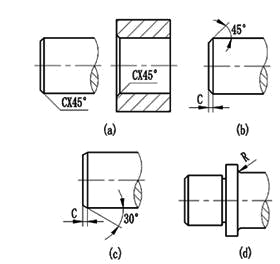 为了便于装配和操作安全,在轴端和孔端一般都要做成一个小锥面,以去除锐边、毛刺。这个锥面就叫倒角。