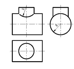 2. 两圆柱相交时,过渡线可采用简化画法,用弧线画出过渡线,弧线的半径等于两圆柱中较大的圆面半径,如左图所示。