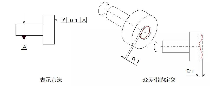 全跳动是指零件绕基准轴线作连续旋转时,沿整个被测表面上的跳动量。全跳动公差是被测实际要素绕基准轴线连续的旋转,同时指示器沿其理想轮廓相对移动时所允许的最大跳动量。