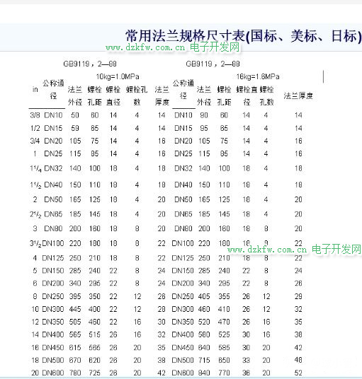 法兰盘在DN150(包括DN150)以下是不分PN10和PN16的,从 DN200开始 PN10的法兰和PN16的法兰在孔径、孔数、法兰盘大小和厚度都有区别,如下表所示: