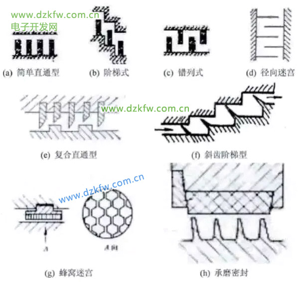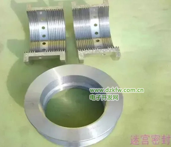 而且高低齿相间排列,与之相配的轴表面,是特制的凹凸沟槽,这种高低齿与凹凸槽相配合的结构,使平滑的密封间隙变成了曲折式,因此,增加了流动阻力,提高了密封效能。