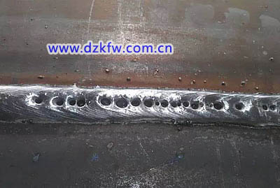 在焊缝中出现的单个、条状或群体气孔,是焊缝内部最常见的缺陷。