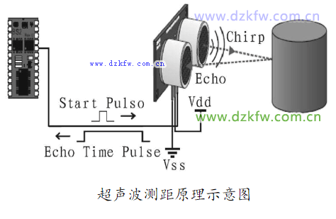 由超声波发射探头发出的超声波脉冲,经媒质(空气)传到物体表面,反射后通过媒质(空气)传到接收探头,测定出超声脉冲从发射到接收所需的时间,根据传输媒质中的声速,计算从探头到物体表面之间的距离。