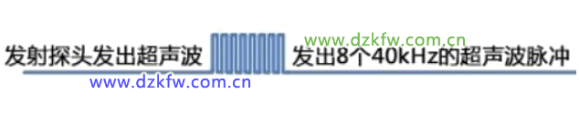 (2)传感器被触发后,发射探头发出8个40KHz检测超声波脉冲,接收探头自动检测回波信号