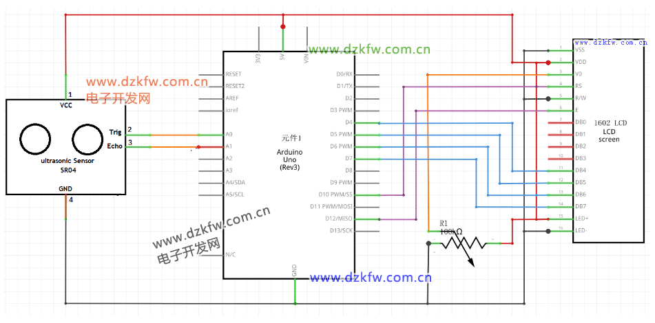 步骤2:数字显示超声波测距程序代码实现功能:超声波测距;1602 LCD实时显示测定距离的值