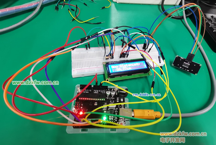 Arduino UNO套件、Arduino IDE、计算机、超声波传感器、1602 LCD显示屏等