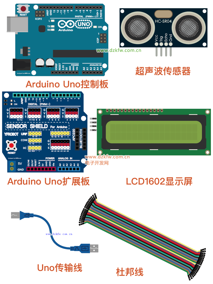 本章使用SR04超声波传感器结合LCD液晶显示屏来实现了超声波测距的功能;并且对于超声波传感器及显示屏都需要调用相应的库文件进行控制,这里需要注意的是一定要使用正确的库文件,因为各类硬件的库文件均来自于不同的开发者,不同的开发者贡献的库会存在库文件名称及方法名不同的情况,当然理论上不同的库文件都能实现对硬件的控制,所以最好使用与本文相同的库文件。完成本章的超声波测距功能之后,不妨联想汽车的倒车雷达原理,其功能也是可以通过Arduino平台来实现的,后续还会带来更多硬件的使用方法及组合成完整功能的教学。