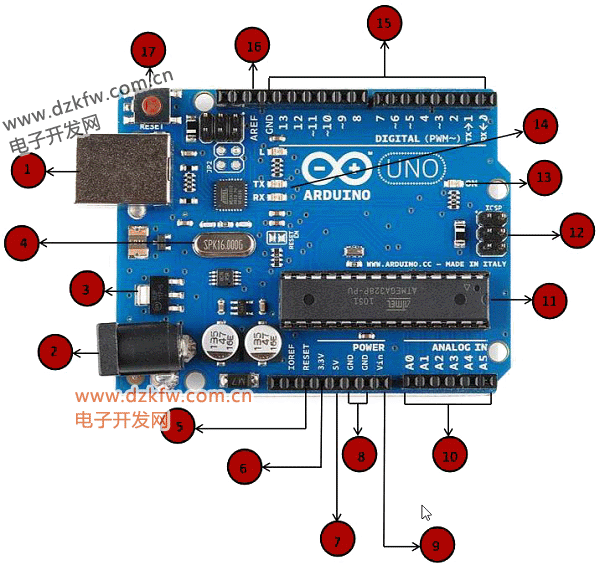- 处理器:使用Atmel Atmega168 328处理器,因其支持者众多,