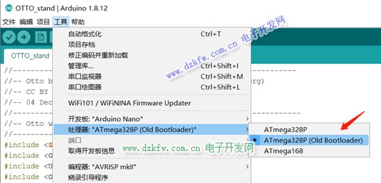 如果上传失败,提示"avrdude: stk500_recv(): programmer is not responding",一般都是处理器版本不对,切换成另一个试试。