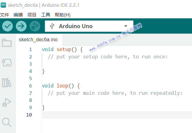 setup函数:启动后只会被运行一次,用来初始化串口、引脚、变量。