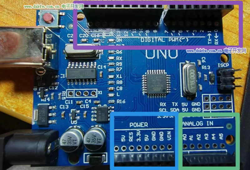 ●A0-A5作为ADC(模数转换器)。这些引脚用作模拟输入,但也可以用作数字输入或者输出。