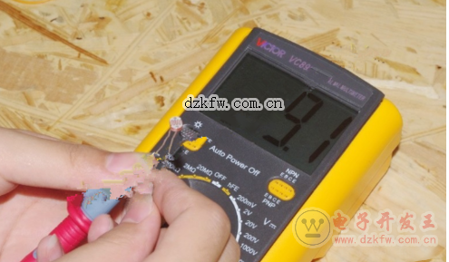 不信的话可以用万用表亲自试验一下,如下图所示,当在光照环境下测量光敏电阻时,只有9千欧。