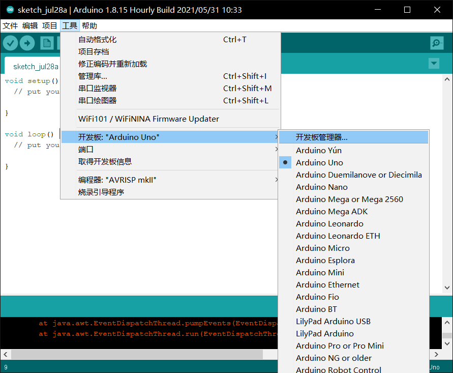 下载下来也没啥安装流程,解压就能用了(Arduino IDE 1.8.15)打开之后就会出现下图: