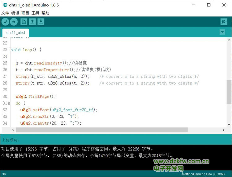DHT11使用上篇介绍的「DHT sensor library」库,OLED使用U8g2库,库安装请参照前面的文章介绍。