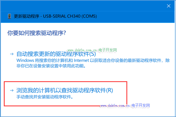 在弹出的对话框中选择下面一项-->手动查找并安装驱动程序软件,如图1-6所示。