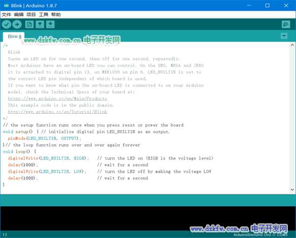 需要注意的是:UNO板上的"L"灯已经和数字引脚13相连了,所以也就是为什么声明为“13”的原因。语句用“;”来表示这句语句的结束。
