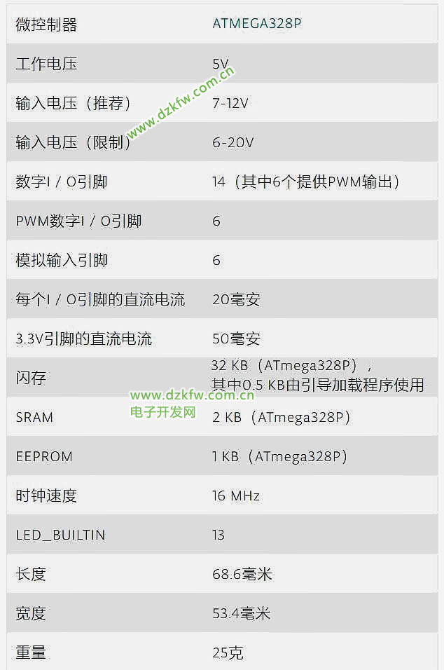 Arduino Uno是ArduinoUSB接口系列的最新版本,它的处理核心是ATMEGA328P。它有14个数字输入/输出引脚(其中6个可用作PWM输出),6个模拟输入,16MHz晶振时钟,USB连接,电源插孔,ICSP接头和复位按钮。只需要通过USB数据线连接电脑就能供电、程序下载和数据通讯。