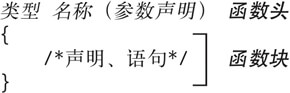 函数包含了函数头和函数块,函数头又由类型、名称、参数声明组成;函数块包含声明和语句。