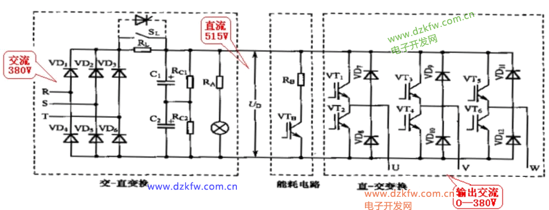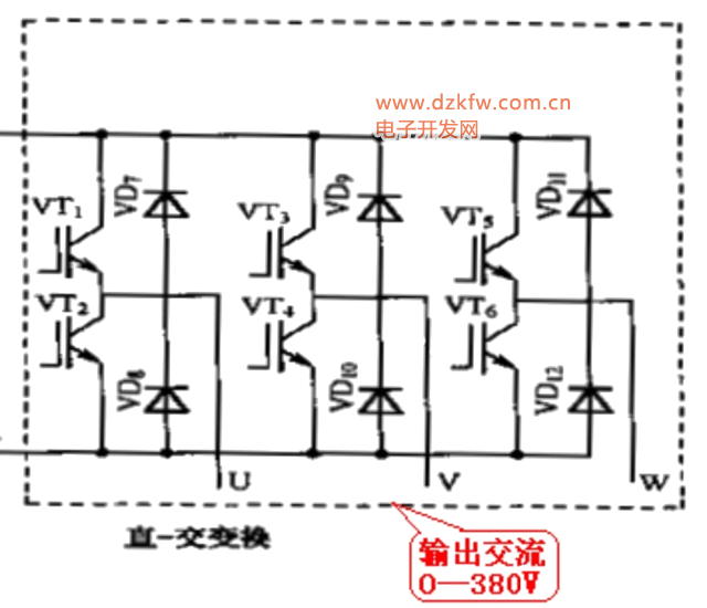 图中,VT1—VT6,逆变管,VD7—VD12,续流二极管