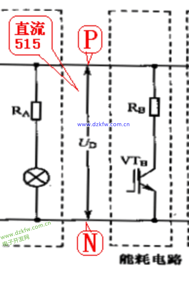 该电路是直流母线电压的检测电路,检测直流母线欠压或过压。该电路出了问题,一是不能正确的提供检测保护信号,产生误报;二是失去保护功能,使制动电阻不能工作,引起主电路过压而损坏。
